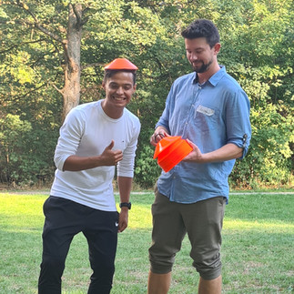 Nach der Stärkung wurden die Teilnehmer:innen in zwei Teams aufgeteilt, die sich bei vier Spielen gegenübertragen. Schon beim ersten Spiel – Tauziehen - wurde der Wetteifer der Teilnehmer:innen entflammt . Anschließend stand eine sportliche Abwandlung von Tic Tac Toe an. Natürlich durfte zudem der klassische Eierlauf nicht fehlen. In der finalen Runde lieferten sich jeweils ein:e Teilnehmer:in des einen und des anderen Teams bei selbst erfundenen Spielen mit 10 Murmeln 1 gegen 1 -Battles. Nach den Spielen wurde der Abend bei Musik, Volleyball und interessanten Gesprächen ausgeklungen.